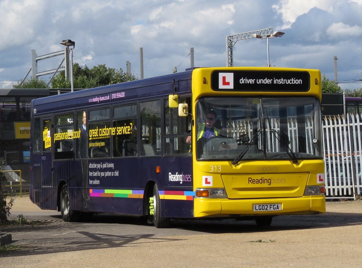 A further two Darts were purchased from Ensignbus (dealer) on 29th November, ex London United, to expand the training fleet to four. They arrived in London red, and retain their centre doors following repaint. 312 was at Hants & Dorset Trim for repaint on 20th January 2014 but 313 was the first noted in use on 24th February 2014. 312 was also noted at Renault Trucks on 5th March 2014 prior to entering service by 10th March. They were named Apple and Blackberry after the names Rhubarb and Custard caught on for 310/1. 312 is seen below on 10 March 2014 and 313 on 3 July 2016: