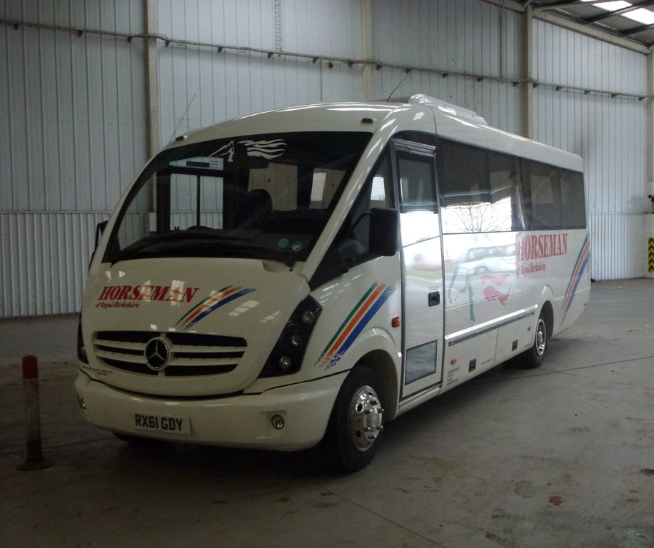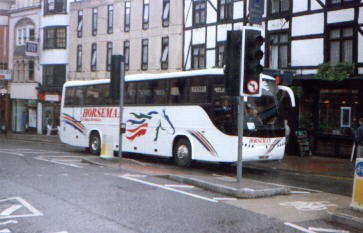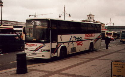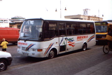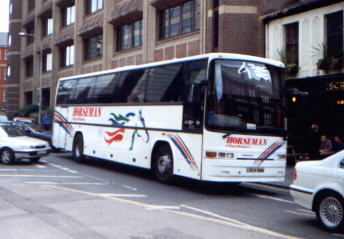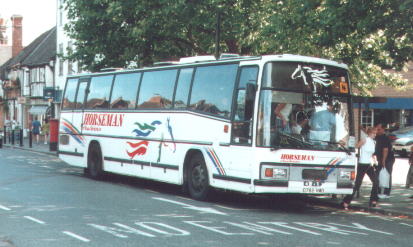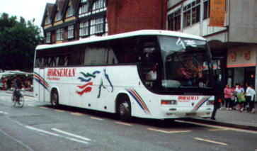 Horseman Coaches are the largest coach operator in the Reading area, operating a large number of school, private hire, racing, football and contract services. Their vehicles can often be seen dropping off groups of people at St. Marys Butts and Reading Station during the day, and most vehicles have been named after famous racing horses of the past. The coaching activities of Chiltern Queens were merged into the Horseman business from April 2002, whilst the stage carriage arm was sold to Thames Travel. Current Fleet Members Caetano Optimo V RX06 WVN in the former Whitley Wood garage on 26th April 2006. Thanks to Bob Stanger for this photo. Mercedes-Benz / Plaxton Cheetah RX61 GDY at the depot on 4th January 2012. Thanks to Bob Stanger for this photo. This is R204 STF, Horseman's rather unusual UVG S320 seen at the former Whitley Wood depot on 26th April 2006. Thanks to Bob Stanger for this photo. Plaxton Premiere RX51 EXO at Reading Station on 1st August 2003. Plaxton Panther RX06 WVB seen in the yard at the former Whitely Wood depot on 26th April 2006. Thanks to Bob Stanger for this photo. Plaxton Panther RK07 KDO leaving the former Whitley Wood depot on its first day in service on 1st March 2007. Thanks to Bob Stanger for this photo. YN09 HRG at the depot on 4th January 2012. Thanks to Bob Stanger for this photo. Coaches lined up inside the Acre Road depot on 21st May 2008. Thanks to Bob Stanger for this photo. Photos of Former Fleet Members This is Caetano Optimo II M672 VJB in May 1999 at Reading Station. Former Plaxton Paramount D782 VMO at St. Mary's Butts on 30th July 2001. Former Plaxton Paramount 3500 K1 HCL (K standing for Keith, one of the owners) at the former Horseman depot on Bennett Road. The text below the horse's head on the front windscreen reads "Coach operator of the year 1994". Note also the older version of fleet livery that it, the Plaxton Excalibur and Plaxton Paramount 4000 next to it wore at the time. L904 NWW is a Jonkheere Deauville seen here in July 1999. Jonkheere Deauville L951 NWW at Reading Station in September 2000. This is N663 VJB at Plaxton Excalibur at St. Marys Butts in the slush that followed the snow in January 2001. This is a Marcopolo Explorer II on a wet June day in 1999. Marcopolo Continental S612 VAY in September 2000 at St. Marys Butts. FJ03 ZTU on a contract service for Direct Wines in Reading on 26th May 2007. Iveco / Beulas Eurorider FJ03 ZTV was amongst four acquired from Whittle in January 2006. It is seen here on 22nd February 2006 not long after being repainted. Thanks to Bob Stanger for this photo. |