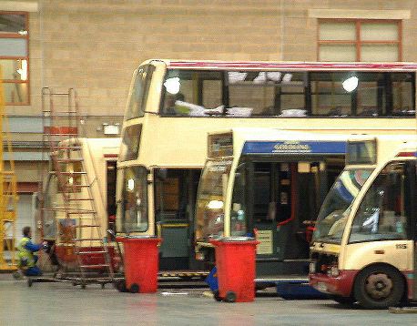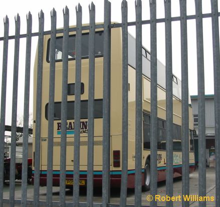 March 2003 < Last Month | News Archive | Next Month > Second Glimpse of Reading Tridents 29-03-03 (updated 31-03-03) Now ready to enter service when April arrives, 475 is seen yesterday parked up at the front of Great Knollys Street. Unfortunately it was at the wrong angle to the outside world to get a shot from the front! 473 was noted by Nigel Utting on uk-bus-fleetnews heading south on the M1 for Reading on 27th, minus fleetnames. Later at 7pm it was noted by a corresponant on the forum, parked outside the Oracle on Bridge Street in Reading. 471, 472, 473, 475, 476 are now thought to have arrived. One possibility that they won't be taking up... 22-03-03 506 has received Bright-tec displays, similar to those installed on some Excels and Spectras. Unfortunately this is only temporary whilst the Hannover dot matrix displays fitted to 501-10 are cleaned and serviced before transfer to Newbury in April. Front, side and rear displays have been altered, although for some reason the front wasn't showing the route number when seen on the 20th! First Glimpse of Reading Tridents 03-03-03 Thanks to Paul Hilton for sending this photo of 476 (PO51 WNM) hidden away in the workshops at Reading's Great Knollys Street depot today. < Last Month | News Archive | Next Month > |