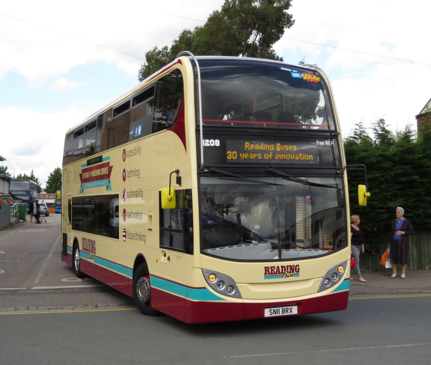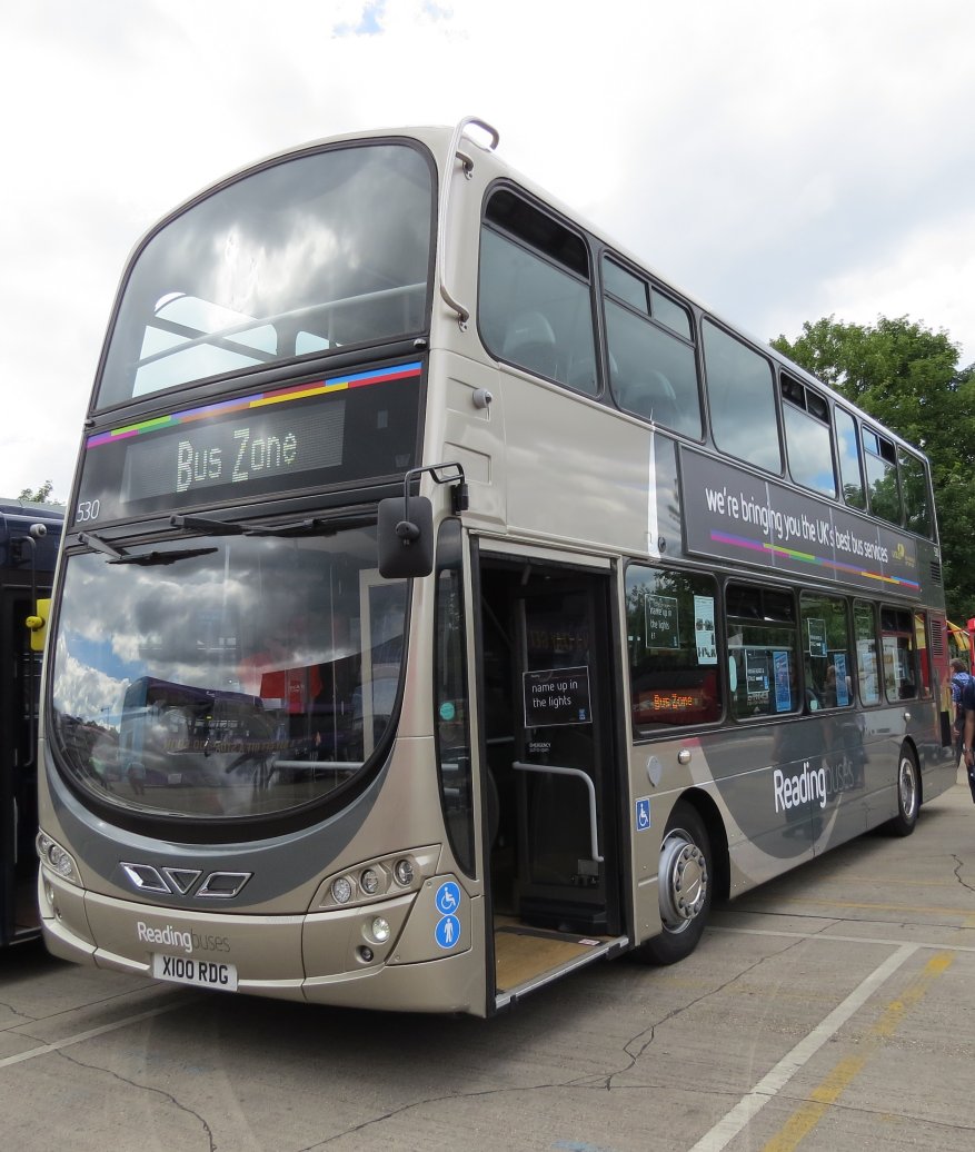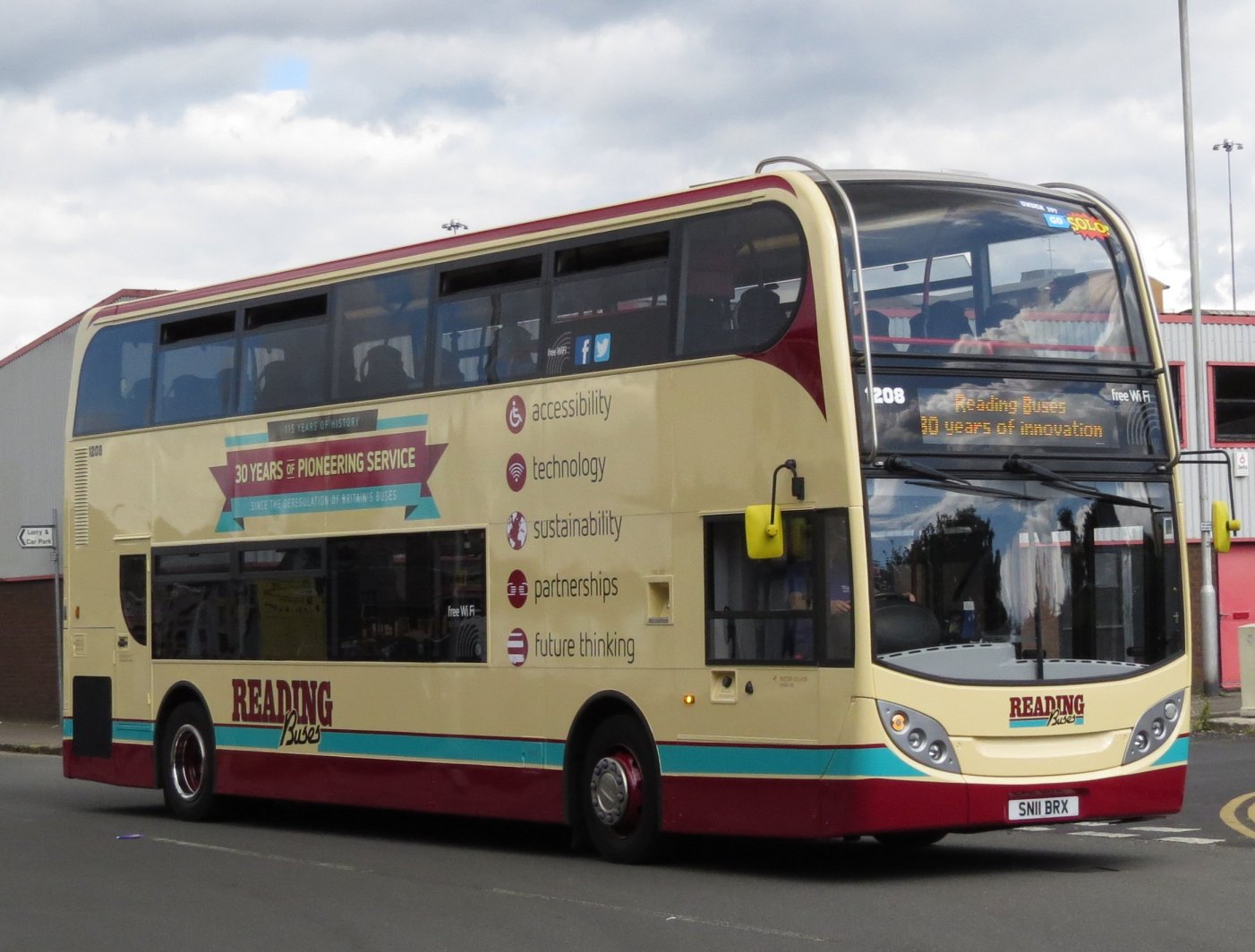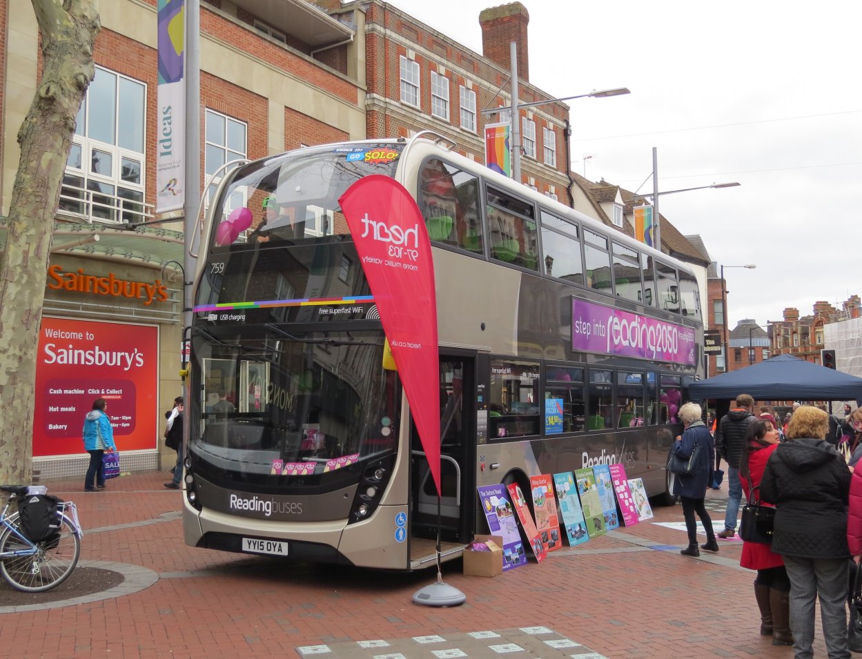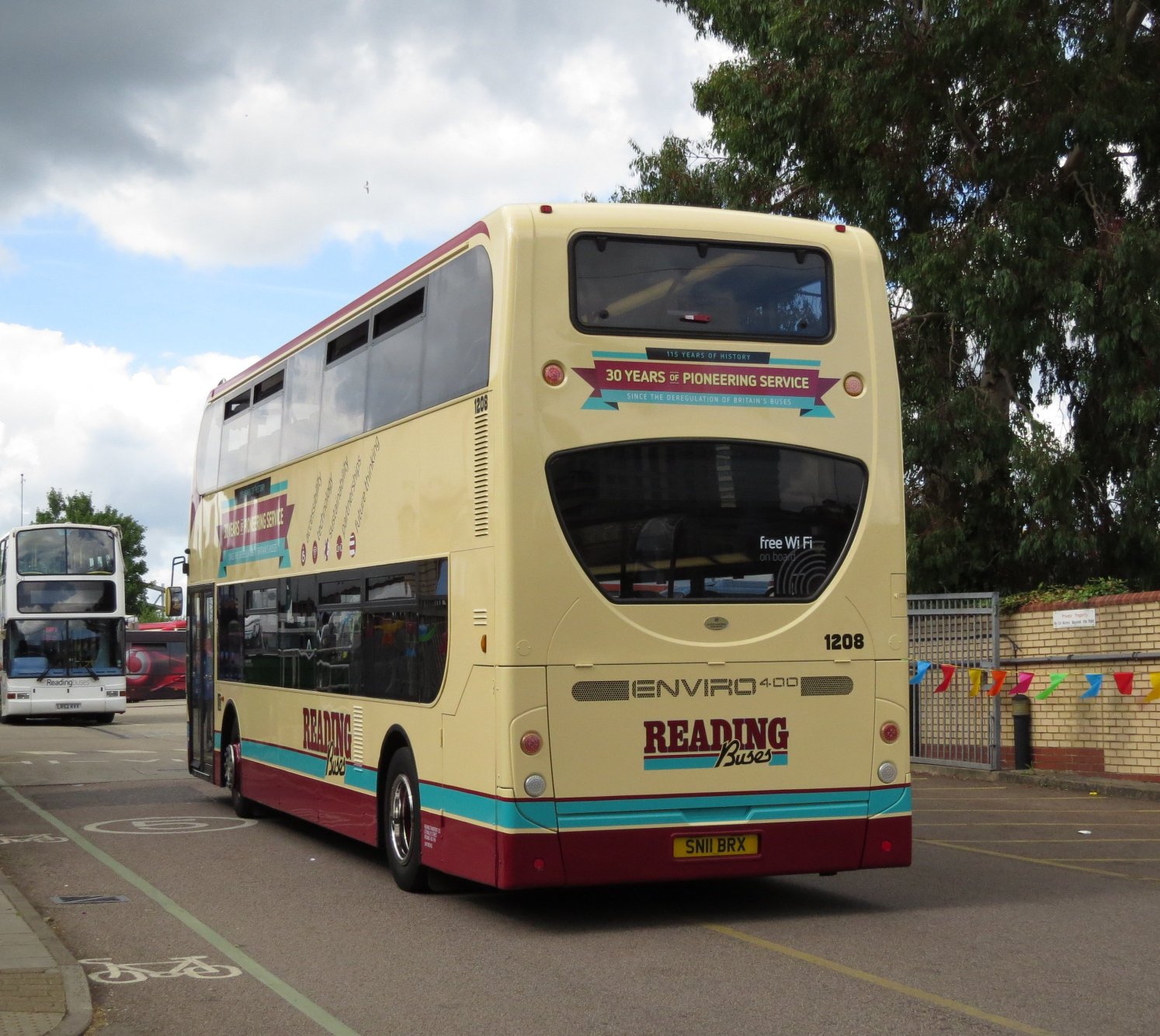 Many of the timetables are amended because of budget reductions, meaning reduced frequencies in some cases. Others are being replaced by a West Berkshire Council operated minibus service, including the section of the 101 between Thatcham and Tilehurst which becomes the 41, and the 104 which becomes the 44. Weavaway / Newbury & District will continue to run route 9/9A/9B/9C to the Newbury Racecourse development. The new operation will be branded ‘Kennections’ using a red and green based livery created by Best Impressions with blue waves. The brand has been inspired by a modern take on the history of buses in Newbury dating back to Alder Valley’s ‘Kennet Bus’ brand (red buses), the green Newbury Buses colour band and blue for the river Kennet. At least two buses will be repainted ready for launch, and work is underway to install a new bus wash and fuel pump at Newbury depot, and further refurbishment of the depot offices is to take place following a staff room refresh earlier this year. The operation will require 7 vehicles, and be made up of Wright Streetlites cascaded from Reading and two second-hand Alexander Dennis Enviro 400s. Whilst the vehicles are being prepared three Optare Versas are expected on loan, which will be supported by 521/3 and 1031 from Reading. In further good news for Newbury Buses, a new five year contract with Vodafone has been secured that will see the entire Vodafone fleet replaced. The single deckers will be Scania Irizar i3 vehicles, with Alexander Dennis Enviro 400 MMCs for the double deckers and Optare Solo SRs for the midi buses. Delivery is expected in the next six months, with timetables changing from 5 September including a reduced frequency on Fridays. Back in the Zone 30-07-16 After an unplanned 7 month break, the site is back providing the latest news and updates from the Reading area. Apologies go to all the regular readers for the gap in service - for some time it has become harder and harder to find the time to keep up everything up to date, and once more than a month had gone by it seemed like a good opportunity to take a break. It wasn't really intended to be quite so long, hence not providing some sort of holding message on the main page. Various issues were behind this, not least moving away from the Reading area in January 2013, but also a new house to maintain, a new part of the Country to explore and a lot of exciting projects at work. In addition, the site is looking increasingly dated and could be a lot easier to maintain and update. The good news is that the commitment and enthusiasm is still there, and the camera hasn't been any less busy. The creative juices aren't flowing enough to come up with a new design just yet, but for the time being the monthly news page and updates pages will become year-by-year to allow for the slightly less frequent but more substantial updates that have really been the norm for the last couple of years now. 530 on 3 July 2016 with special Bus Zone destination displays. In Short 30-07-16 Here is a quick catch-up on some of the things we've missed.... November 2016 - Reading Buses won the title of UK Bus Operator of the Year at the UK Bus Awards for the first time, having been runner up for the previous two years. 758 had special adverts applied to celebrate the success, along with a special photo-shoot where a number of windows were taken out for staff to hang through to highlight the vehicle type's quick change mechanism and all of the people involved with making the company a success. 758 still had the adverts in place on 4 June 2016. By the end of November, 803/56/10 had all returned from repaint into generic silver with the Reading Buses colour bar across the destination display, and new wording "your usual coloured bus is being serviced today so this is one of our spares" on the sides. 806 at Reading Station on 2 July 2016. January 2016 - Reading Buses selected CALM (Campaign Against Living Miserably) as their charity of the year and repainted 1114 into a ColourBus livery for them. 1114 at St Mary's Butts on 4 June 2016. Following on from the summer vehicle trails, an Optare Metrodecker arrived for a number of weeks loan. It's time was primarily spent on Woodley services 13 and 14 due to the demonstrator's bright orange livery, but it also spent a short period on Vodafone services in Newbury before returning to Optare. 109 at Jackson's Corner on 9 January 2016. March 2016 - a two-day exhibition on the future of Reading was held in the town centre on 18 and 19 March to garner the ideas and enthusiasm of the people who live, work and play in Reading. The team behind the Reading UK 2050 initiative from Barton Willmore, Reading UK CIC and the University of Reading were on hand along with Reading Buses 759 to talk people through their ideas, and a dedicated social media campaign encouraged and facilitated contributions and feedback from everyone. 759 in Broad Street on 19 March 2016. The vehicle was on Reading Station forecourt the previous day. April 2016 - Warranty work commences on the recent fleet of Alexander Dennis Enviro 400 MMCs 751-74, and Alexander Dennis supply Enviro 400H demonstrator SN16 OGT on long term loan, and is given fleet number 232 and used as part of the generic fleet. It has a Euro 6 engine compared to the rest of the fleet which are Euro 5. 232 at The Water Tower (Bear Inn) on 23 April 2016. At the same time work is underway to evaluate replacement battery options for hybrids 201-31 as the batteries come up for their 5 year renewal under a scheme supported by the DfT's Clean Vehicle Technology Fund. 205 has been away at Magtec since March for the installation of a plug-in-electric drivetrain with a sub-1000cc on-board Compressed Natural Gas engine to extend the range of the bus. A second example is having a Vantage Power series-hybrid system fitted, bringing stop-start and selective zero emission running capability. Wright Streetdeck 106 paid a second visit to Reading ahead o