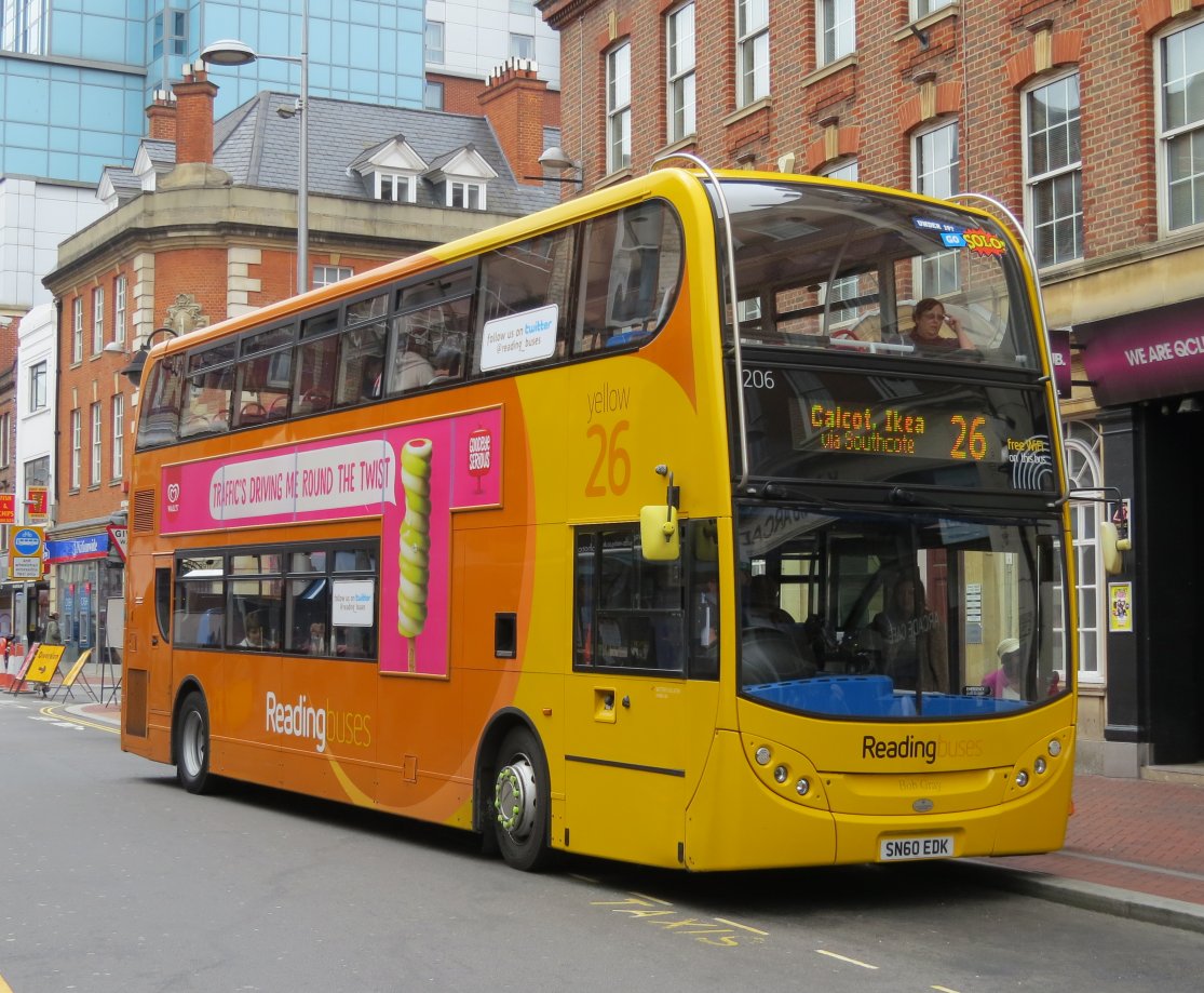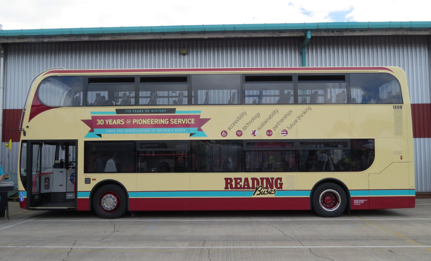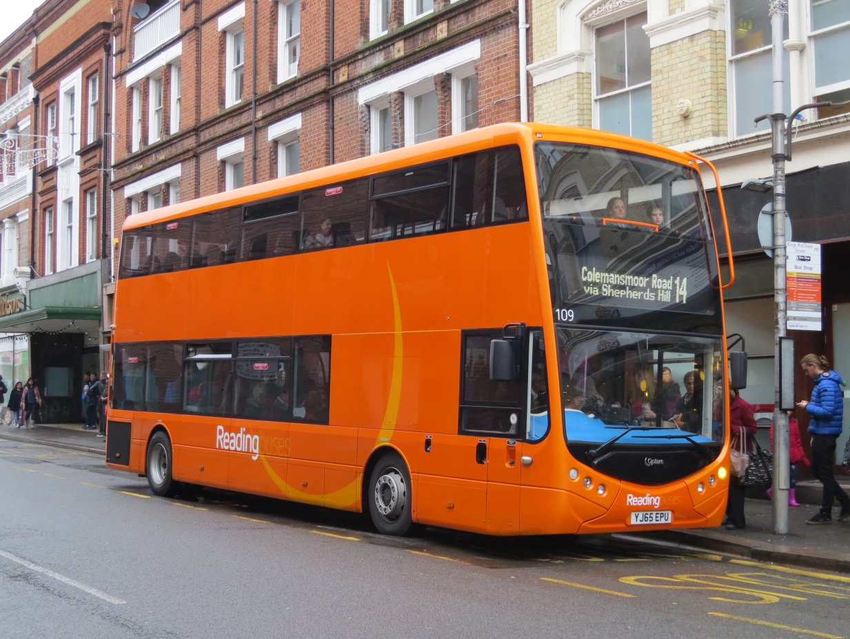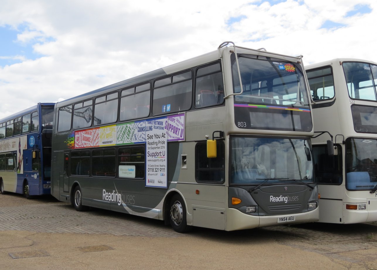 Many of the timetables are amended because of budget reductions, meaning reduced frequencies in some cases. Others are being replaced by a West Berkshire Council operated minibus service, including the section of the 101 between Thatcham and Tilehurst which becomes the 41, and the 104 which becomes the 44. Weavaway / Newbury & District will continue to run route 9/9A/9B/9C to the Newbury Racecourse development. The new operation will be branded ‘Kennections’ using a red and green based livery created by Best Impressions with blue waves. The brand has been inspired by a modern take on the history of buses in Newbury dating back to Alder Valley’s ‘Kennet Bus’ brand (red buses), the green Newbury Buses colour band and blue for the river Kennet. At least two buses will be repainted ready for launch, and work is underway to install a new bus wash and fuel pump at Newbury depot, and further refurbishment of the depot offices is to take place following a staff room refresh earlier this year. The operation will require 7 vehicles, and be made up of Wright Streetlites cascaded from Reading and two second-hand Alexander Dennis Enviro 400s. Whilst the vehicles are being prepared three Optare Versas are expected on loan, which will be supported by 521/3 and 1031 from Reading. In further good news for Newbury Buses, a new five year contract with Vodafone has been secured that will see the entire Vodafone fleet replaced. The single deckers will be Scania Irizar i3 vehicles, with Alexander Dennis Enviro 400 MMCs for the double deckers and Optare Solo SRs for the midi buses. Delivery is expected in the next six months, with timetables changing from 5 September including a reduced frequency on Fridays. Back in the Zone 30-07-16 After an unplanned 7 month break, the site is back providing the latest news and updates from the Reading area. Apologies go to all the regular readers for the gap in service - for some time it has become harder and harder to find the time to keep up everything up to date, and once more than a month had gone by it seemed like a good opportunity to take a break. It wasn't really intended to be quite so long, hence not providing some sort of holding message on the main page. Various issues were behind this, not least moving away from the Reading area in January 2013, but also a new house to maintain, a new part of the Country to explore and a lot of exciting projects at work. In addition, the site is looking increasingly dated and could be a lot easier to maintain and update. The good news is that the commitment and enthusiasm is still there, and the camera hasn't been any less busy. The creative juices aren't flowing enough to come up with a new design just yet, but for the time being the monthly news page and updates pages will become year-by-year to allow for the slightly less frequent but more substantial updates that have really been the norm for the last couple of years now. 530 on 3 July 2016 with special Bus Zone destination displays. In Short 30-07-16 Here is a quick catch-up on some of the things we've missed.... November 2016 - Reading Buses won the title of UK Bus Operator of the Year at the UK Bus Awards for the first time, having been runner up for the previous two years. 758 had special adverts applied to celebrate the success, along with a special photo-shoot where a number of windows were taken out for staff to hang through to highlight the vehicle type's quick change mechanism and all of the people involved with making the company a success. 758 still had the adverts in place on 4 June 2016. By the end of November, 803/56/10 had all returned from repaint into generic silver with the Reading Buses colour bar across the destination display, and new wording "your usual coloured bus is being serviced today so this is one of our spares" on the sides. 806 at Reading Station on 2 July 2016. January 2016 - Reading Buses selected CALM (Campaign Against Living Miserably) as their charity of the year and repainted 1114 into a ColourBus livery for them. 1114 at St Mary's Butts on 4 June 2016. Following on from the summer vehicle trails, an Optare Metrodecker arrived for a number of weeks loan. It's time was primarily spent on Woodley services 13 and 14 due to the demonstrator's bright orange livery, but it also spent a short period on Vodafone services in Newbury before returning to Optare. 109 at Jackson's Corner on 9 January 2016. March 2016 - a two-day exhibition on the future of Reading was held in the town centre on 18 and 19 March to garner the ideas and enthusiasm of the people who live, work and play in Reading. The team behind the Reading UK 2050 initiative from Barton Willmore, Reading UK CIC and the University of Reading were on hand along with Reading Buses 759 to talk people through their ideas, and a dedicated social media campaign encouraged and facilitated contributions and feedback from everyone. 759 in Broad Street on 19 March 2016. The vehicle was on Reading Station forecourt the previous day. April 2016 - Warranty work commences on the recent fleet of Alexander Dennis Enviro 400 MMCs 751-74, and Alexander Dennis supply Enviro 400H demonstrator SN16 OGT on long term loan, and is given fleet number 232 and used as part of the generic fleet. It has a Euro 6 engine compared to the rest of the fleet which are Euro 5. 232 at The Water Tower (Bear Inn) on 23 April 2016. At the same time work is underway to evaluate replacement battery options for hybrids 201-31 as the batteries come up for their 5 year renewal under a scheme supported by the DfT's Clean Vehicle Technology Fund. 205 has been away at Magtec since March for the installation of a plug-in-electric drivetrain with a sub-1000cc on-board Compressed Natural Gas engine to extend the range of the bus. A second example is having a Vantage Power series-hybrid system fitted, bringing stop-start and selective zero emission running capability. Wright Streetdeck 106 paid a second visit to Reading ahead o