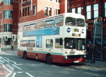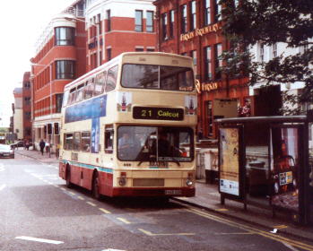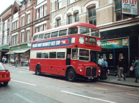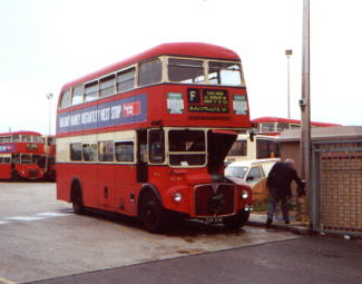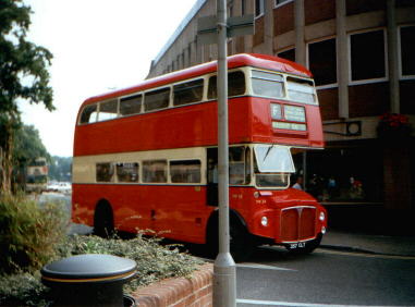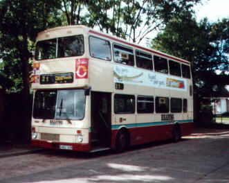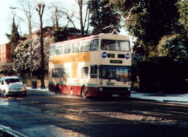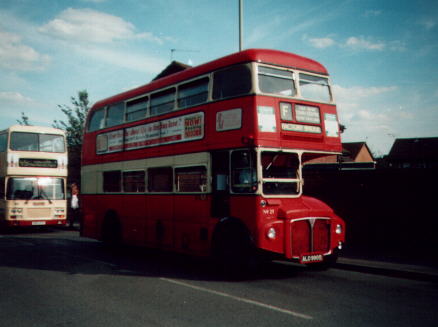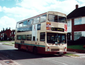 This page is about former Reading Mainline Line F which later became Reading Buses route 21 until the route was withdrawn from 9th March 2002. For most of it's operation under Reading Mainline the service operated every 20 minutes during the day and peak periods, but with no service in the evenings or Sundays. Line F started operation on 25 May 1996 operating every 20 minutes between Southcote (Frilsham Road) and Wokingham Road (Three Tuns). The route was soon extended to Calcot (Savacentre) from 28th September 1996 and then into Woodley from 18th August 1997. The service had a number of different terminal arrangements in Woodley over the years (which are detailed below), and the frequency was eventually reduced to every 30 minutes. After a period of operation under Reading Buses as route 21 it was cut back further from Calcot to Ford's Farm and to every 60 minutes. The first terminus in Woodley for Line F was at Arundel Road, but a small number of residents in Wingate Road (part of the turning circle) complained about Mainline's "polluting buses" running around their quiet residential road and started a poster campaign to rid themselves of the buses. Most of the people in the area actually welcomed the service, but almost a year later it was decided to extend the service to Vauxhall Drive at peak periods and to Hurricane Way off peak. The changes commenced from 15th August 1998, around the time when Reading Mainline was taken over by Reading Buses. The residents there were then unhappy because the buses would park on a slip road off Crockhamwell Road. From 7th June 1999 the buses went back to terminating at Arundel Road at peak periods, but cut short at The Thatchers off peak. After this change the route started to suffer from timing difficulties, and as a temporary measure an extra bus had to be added to the schedule on Saturdays resulting in a 25 minute wait at Savacentre. From 21st February 2000 another change was made, with buses once again using the Vauxhall Drive terminus at all times of day. The final change to the route under Mainline came on 12th June 2000 when Mainline Line C was withdrawn. The F was altered to cover for the route, both by being extended to Clivedale Road and also by being rerouted within Woodley. This final route did not even pass the old Arundel Road terminus. Reading Buses started operating the 21 on 24th July 2000 when the last of the Mainline services were finally withdrawn. Reading Buses used the old Mainline crews to crew operate the route but on standard double deckers. Special notices were placed in the front windows and inside to say that the service was crew operated. The route within Woodley was again altered so that the service passed Arundel Road, but in the opposite direction to the original F. Conductors were then withdrawn from the route exactly three months later, which led to problems turning the buses around at Clivedale Road where a reversing manoeuvre was required. Previously the conductors would supervise this, so Reading Buses employed a reverser to help the buses turn around as they came along during the day. All of the other Reading Buses routes had a Roundabout or loop at the terminus which they could use without any problems, so from 2nd April 2001 the 21 was altered to omit Clivedale Road using a loop which carried straight on from Coppice Road along Drovers Way and back onto Crockhamwell Road. This arrangement was to be maintained until a bus link could be put in at the end of Clivedale Road to allow the buses to carry on back into Woodley, but this never materialised. The Woodley loop was reversed from 30th July 2001, and the terminal point altered to be further around the loop at The Good Companions. The route was also cut short at the other end to terminate at Fords Farm, but the 21 was unique in that it served the Calcot Estate so service 25 was re-routed to replace it, whilst the 44/45 continued to serve Beansheaf as the 25 did. The frequency was also reduced to every hour. The route was finally withdrawn from 9th March 2002 as part of some emergency route withdrawals designed to help ease a major driver shortage. Underwood Road and Calcot Place Drive were left un-served at the Ford's Farm end, and Woodley residents lost their link into town. Wokingham Council tendered 'Hospitalink' service 42 was diverted to cover most of the affected areas of Woodley, but because it terminated at the hospital rather than going right into the town centre, it wasn't of much use to residents. Thankfully the driver situation had eased by 28th October 2002, which allowed the 42 to be extended into town, restoring some of the previously lost links, whilst maintaining the new link to the hospital. The 42 was renumbered 62 from 25th February 2008 to better fit in to the Woodley sequence of route numbers. As Line F former London AEC Routemasters were always used on the route, the crew operated 21 used mainly Mk2 Metrobuses, then once the crews were withdrawn any double decker would be used along with the occasional single deck Optare Excel. When the 21 was cut to every hour the Excels became standard, and now yet smaller Optare Solos are used to operate service 42. Following are some pictures of buses operating the F and 21, starting from the Great Knollys Street depot, heading for Savacentre, coming back into town, on into Woodley, back into town and then back the to depot again. Former AEC Routemaster No. 36 preparing to go into service on Line F for the last time on 22nd July 2000. Former AEC Routemaster No. 25 at Beansheaf Farm in July 2000, it is operating a peak period short working. Former AEC Routemaster No. 43 at Calcot Savacentre in July 2000. Former AEC Routemaster No. 24 overtaking and No. 14 at Calcot Post Office, heading towards town on 22nd July 2000. No.14 is operating an Extra service that was laid on for the last day of Routemaster operations. Former MCW Metrobus 182 on Bath Road in the snow of December 2000. Former AEC Routemaster