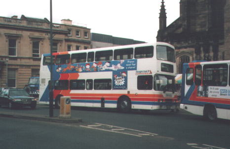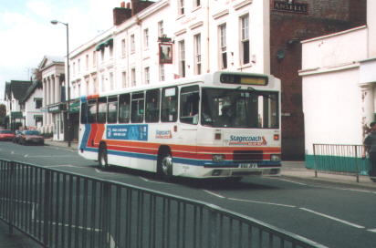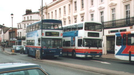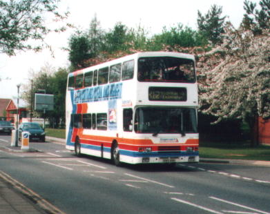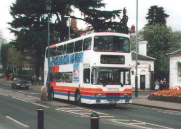 Volvo Olympian / Alexander RL Types have been generally used on the route since 1998 when 16614-20 were purchased specifically for it with a capacity of 51 upstairs and 36 downstairs. From time to time other Olympians from the fleet have been used as well, although these occurrences have been vastly reduced since the introduction of the dedicated Unibus livery. The Volvo Olympians still present a modern image with bright, clean interiors and give a very smooth and enjoyable ride. In the past the occasional single deck and even minibus haven't been unknown, adding a little excitement to the proceedings. Following are some pictures of buses operating the route, starting from the University, going through to Leamington, and then back to the University again. This is Alexander RL Type 919 (later 16619) at the main loading point at Warwick University on 27th October 2000. This is 931 (later 16031), a Volvo Olympian with Northern Counties Palatine 1 bodywork about to leave the University Campus on 15th February 2002. 16616 wearing Unibus livery on 15th October 2005. It is seen waiting time at a small temporary bus station in Beaucamp Street which was in use for a number of months whilst the Upper Parade was closed for road improvement works. This is Leyland Olympian 910 (later 14930) on the Upper Parade in Leamington on 27th June 2001. Leyland Olympian 926 (later 14516) travels down the Parade on 9th July 2003 on a X14 working. This is Alexander RL Type 915 (later 16615) opposite the Royal Pump Room on 4th May 2001. This is Alexander RL Type 919 (later 16619) a little further down by the Parish Church on 4th May 2001. This is Alexander PS Type 262 (later 20402) on a very usual working of the X12 to the University on 4th May 2001, seen here approaching the Parish Church stop from Sydenham. This is Alexander RL Type 916 (later 16616) competing with Travel West Midlands MCW Metrobus Mk 2 2634 for passengers, heading for the University from opposite the Parish Church on 4th May 2001. This is Alexander RL Type 915 (later 16615) just past the main entrance to the University on 9th May 2001. This is Alexander PS Type 208 (later 20208) passing the University Arts Centre on 31st November 2000 on an odd single deck working of the X14. The back of 16615 (originally 915) outside the depot in Leamington on Sunday 1st February 2003. |