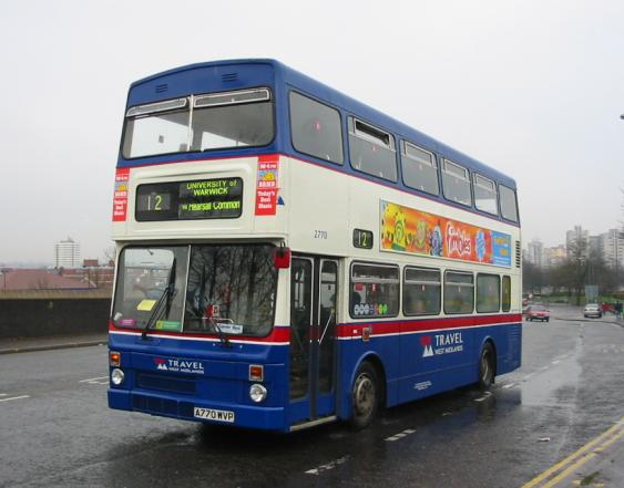 In the mid 2000s the 12A and 112 were changed into ordinary 12s, and then in April 2006 the 12E and 12W were renumbered 12 highlighting the frequency of the route. Generally Dennis Tridents with Alexander ALX 400 bodywork are used on the route along with the occasional Volvo. Prior to the arrival of the Tridents in summer 2001 the route was solely operated by these Metrobuses, and then saw a mixture on peak extras until later in the 2000s. Occasionally a single deck low floor or Leyland Lynx can appear on some of the quieter journeys, before going on to normal duties on other routes. Very occasionally though they do stay on the route for the whole day. Following are some pictures of buses operating the route, starting from Coventry Pool Meadow Bus Station, going through to Leamington Parish Church via the University, and then back to the University and Coventry again. This is MCW Metrobus Mk II 2867 at Coventry Pool Meadow bus station on 14th June 2001, departing for Leamington. This bus wears traditional Coventry corporation colours and a model has actually been produced of it on this route, but heading back to Coventry. 2770 leaving the Coventry Railway Station stop on 16th November 2002 on a short working to the University. 2770 again, this time at the main University bus stop loading passengers heading for Leamington on 8th October 2000. At this time it still had silver between the decks. 4404 provides a more up to date view from the same location, but from the opposite side of the road. It is a Dennis Trident / Alexander ALX400, and is seen on 3rd January 2003. This is 4215 stopped a little bit past the bus stop which was being blocked by a Stagecoach Olympian on 26th September 2001. Here is MCW Metrobus Mk II 2968 approaching the Lower Parade in Leamington, heading back to Coventry on 18th June 2001. This is MCW Metrobus Mk 2 2634 competing for passengers with Stagecoach Midland Red Alexander RL Type 916 heading for the University opposite the Parish Church on 4th May 2001. Here is MCW Metrobus Mk II 3037 passing the Royal Pump Room in Leamington on 4th May 2001. This is MCW Metrobus Mk II 2465 approaching the first of the two Warwick University stops in the snow on 19th January 2001. This is 2839 unloading at the first University stop on 18th November 2002. Students usually alight here for the main academic areas of the University. This is MCW Metrobus Mk II 3038 operating the 112 variant again in the snow at the second Warwick University stop on 19th January 2001. This stop is just outside the Students Union, and is where most students from Campus board buses. This is Dennis Trident / Alexander ALX400 4208 as the same position, operating another of the variants, the 12E on 3rd October 2001. Another view from the same location, this time 4212 on 3rd January 2003 not longer after repaint into Travel Coventry livery. This is Dennis Trident / Alexander ALX400 4206 on the A46 just before the junction with Standard Avenue on 7th December 2001. This is 4218, one of Dennis Trident / Alexander ALX400s, opposite Sainsburys in Canley on 29th September 2001. This Dennis Trident / Alexander ALX400 fleet number 4212 passing Coventry Railway Station on 5th January 2002. This Dennis Trident / Alexander ALX400 fleet number 4224 about to enter Coventry Pool Meadow bus station on 10th January 2002. |